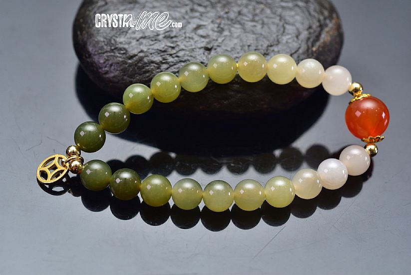 和闐玉紅瑪瑙圓珠手鍊